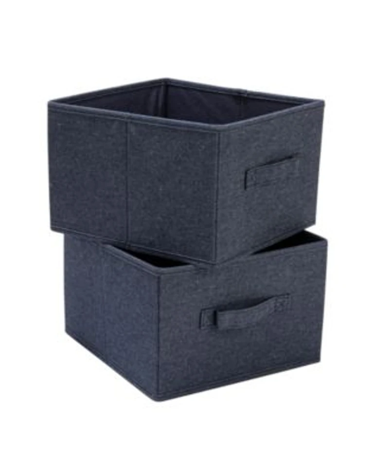 Household Essentials Collapsible Cotton Blend Cube Storage Drawer With Handle Set Of 2 Denim