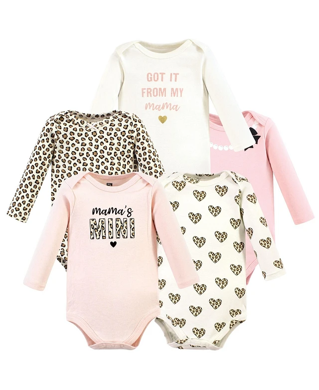 Hudson Baby Baby Girls Hudson Cotton Long-Sleeve Bodysuits, Leopard Hearts, 3-6 Months