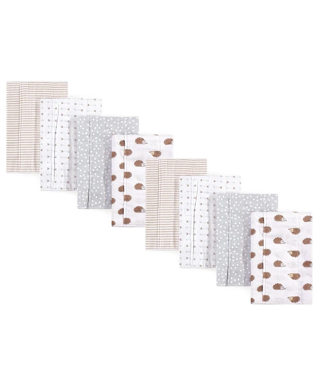 Hudson Baby Boys and Girls Cotton Poly Flannel Burp Cloths 8-Pack, Hedgehog, One Size
