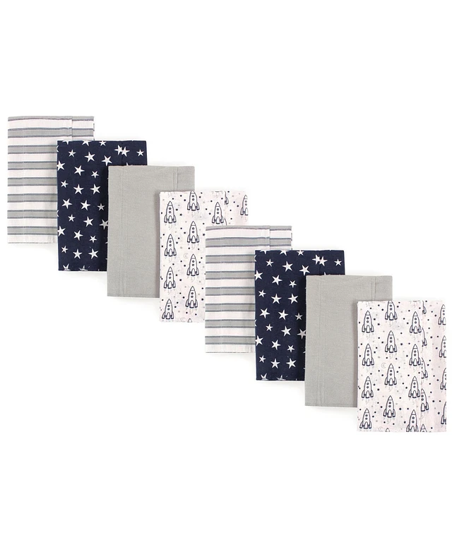 Hudson Baby Boys and Girls Cotton Poly Flannel Burp Cloths 8-Pack, Rocket Ship, One Size