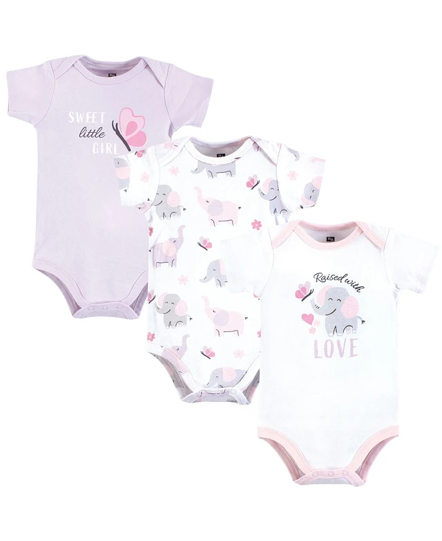 Hudson Baby Girls Cotton Bodysuits, Elephant Butterfly, 9-12 Months