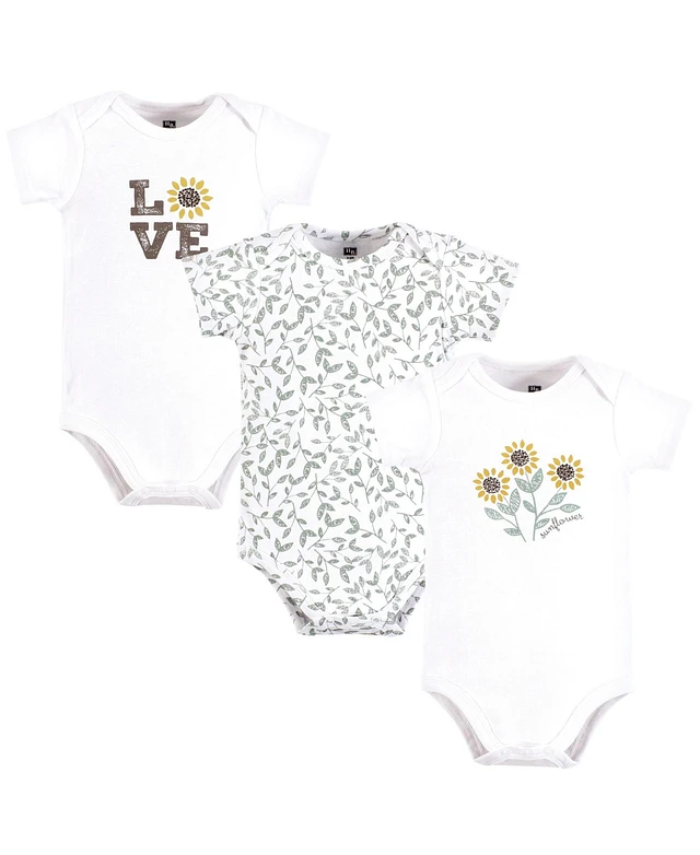 Hudson Baby Girls Cotton Bodysuits, Sunflower Love, 9-12 Months