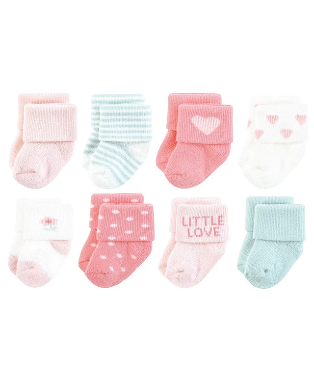 Hudson Baby Girls Cotton Rich Newborn and Terry Socks Love