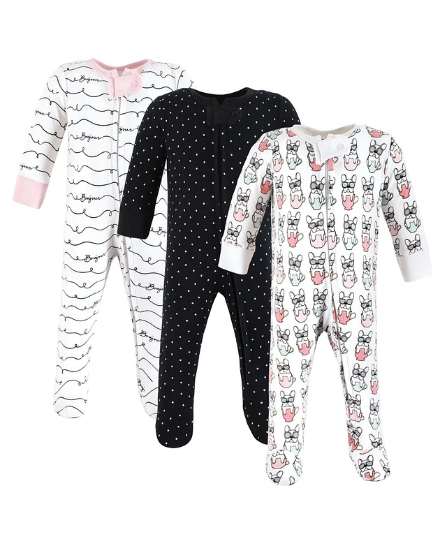 Hudson Baby Girls Cotton Sleep and Play, Bonjour, 0-3 Months