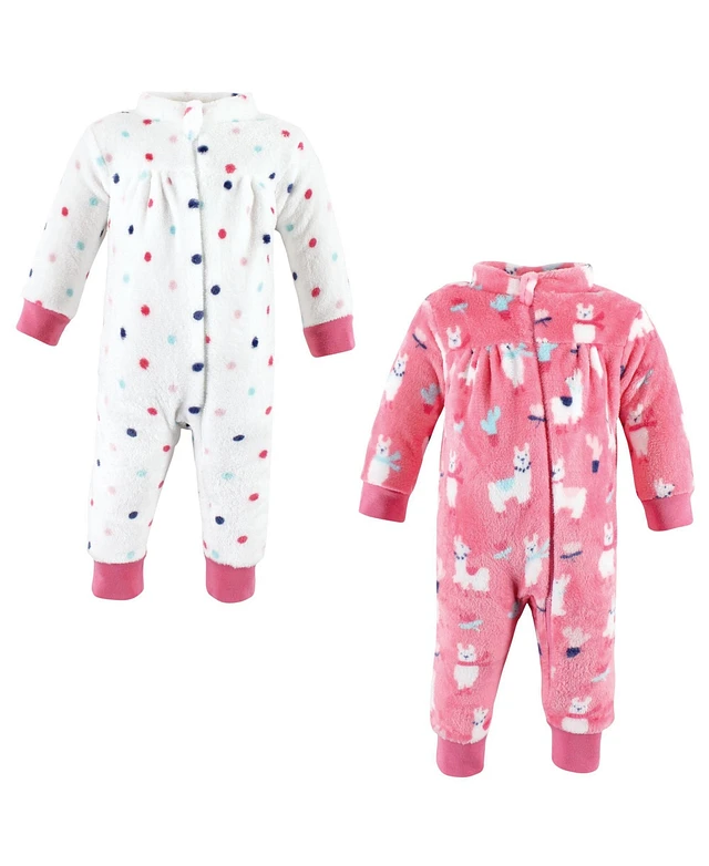 Hudson Baby Girls Plush Jumpsuits, Llama, 0-3 Months