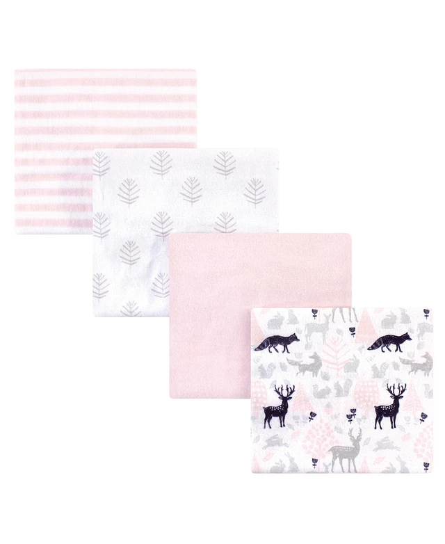 Hudson Baby Girls 4pk Cotton Flannel Receiving Blankets