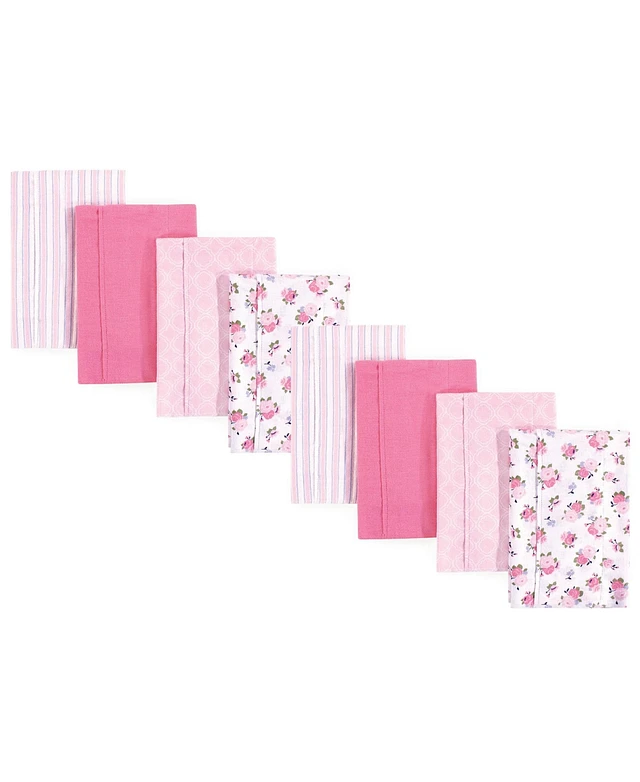 Hudson Baby Luvable Friends Girls Cotton Poly Flannel Burp Cloths 8-Pack, Garden, One Size