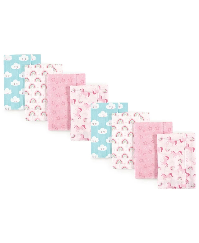 Hudson Baby Luvable Friends Girls Cotton Poly Flannel Burp Cloths 8-Pack, Rainbow, One Size