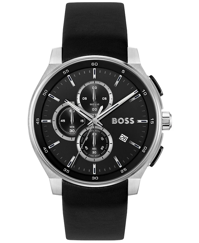 Hugo Boss Men's Chronograph Troper Black Leather Strap Watch 45mm