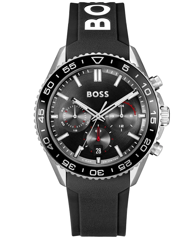 Hugo Boss Men's Chronograph Velocity Black Silicone Strap Watch 45mm