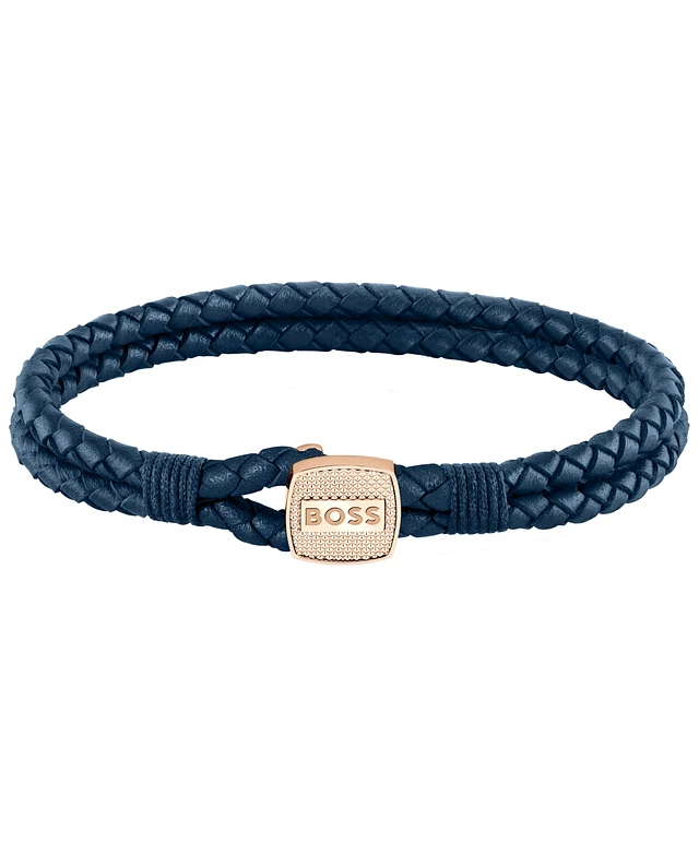 Hugo Boss Men's Seal Ionic Plated Carnation Gold Steel Blue Leather Bracelet