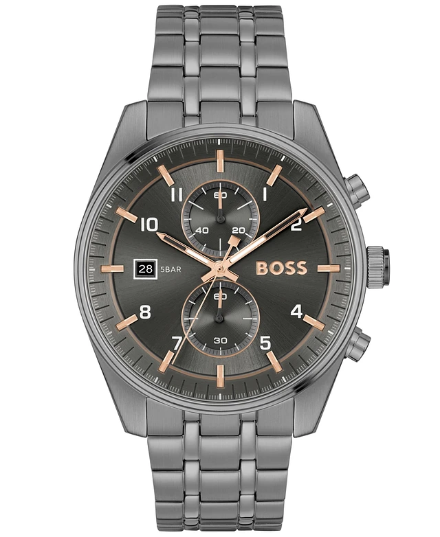 Hugo Boss Men's Strike Quartz Chronograph Ionic Plated Gray Stainless-Steel Watch, 41mm