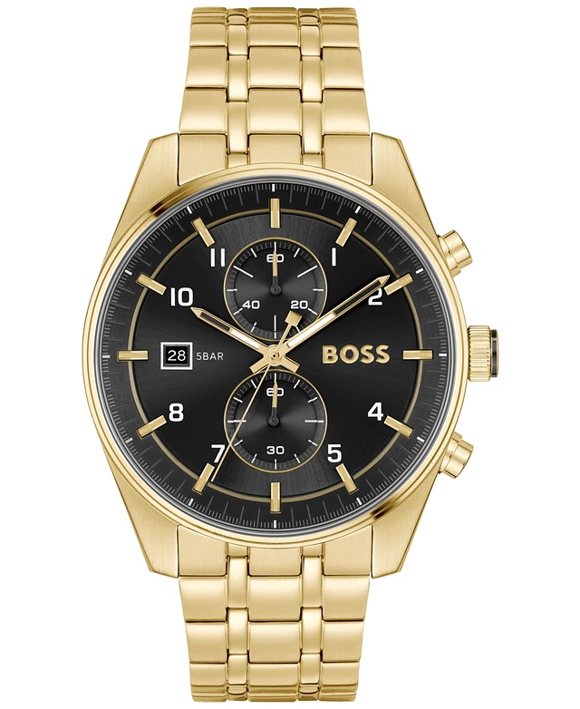 Hugo Boss Men's Skytraveller Quartz Fashion Chrono Ionic Plated Thin Gold-Tone Steel Watch 44mm