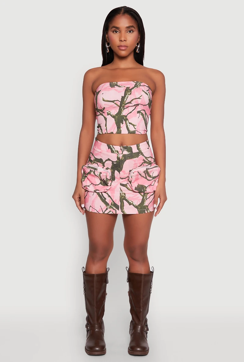 Hunter Camo Print Zip Cargo Pocket Skirt