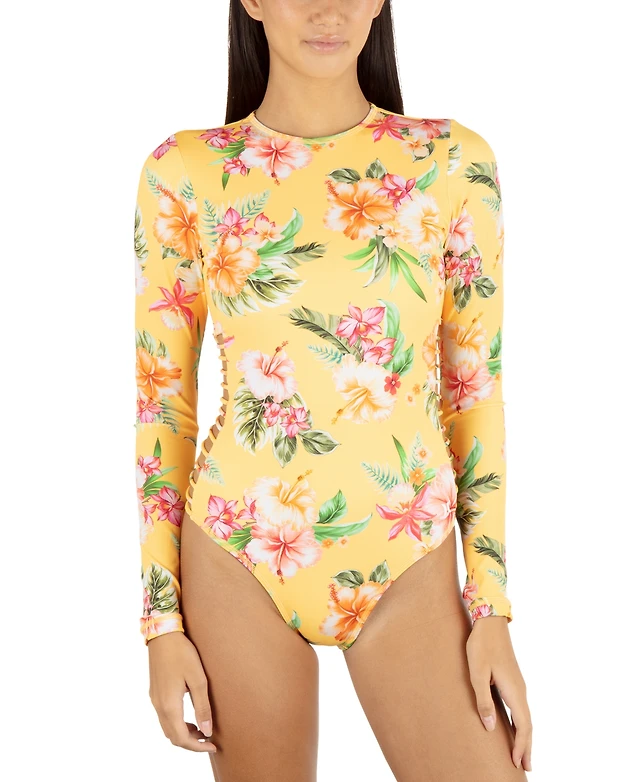 Hurley Juniors' Malia Floral-Print Cut-Out Back-Zip Surf Suit