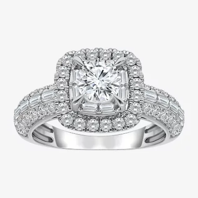 (I / I1) Womens 2 CT. T.W. Lab Grown White Diamond 10K Gold Round Side Stone Halo Engagement Ring