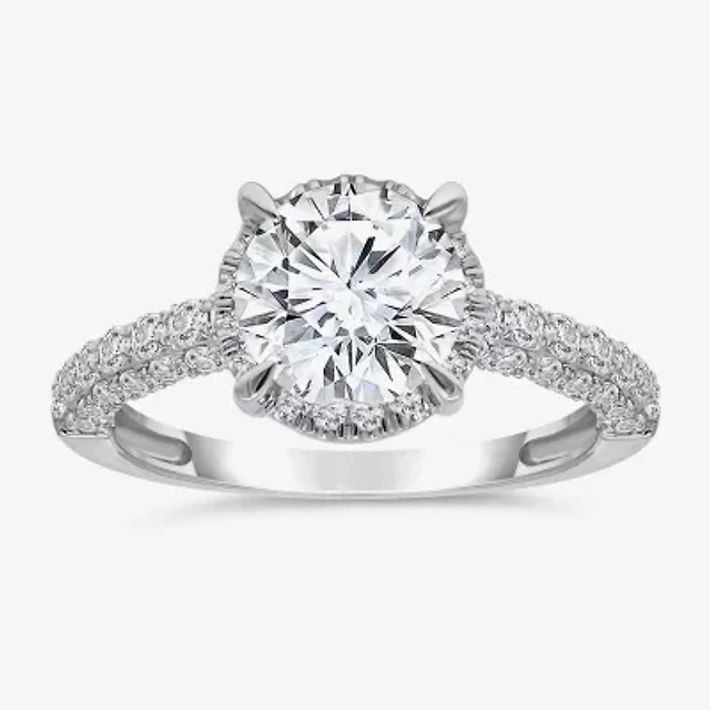 (I / I1) Womens 3 1/7 Ct. T.W. Lab Grown White Diamond 14K Gold Halo Engagement Ring