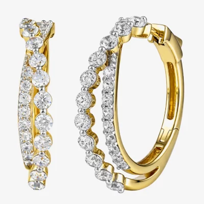 (I / I2) Womens 2 CT. T.W. Lab Grown White Diamond 14K Gold Over Silver 27.4mm Hoop Earrings