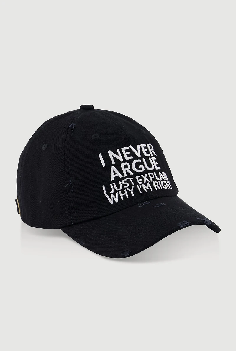 I Never Argue Graphic Baseball Hat in Ponce, PR