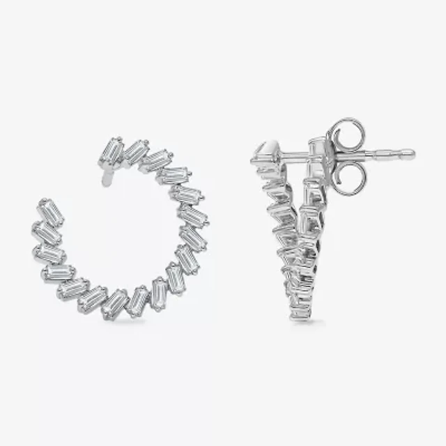 Womens 1/2 CT. T.W. Lab Grown White Diamond Sterling Silver 11.1mm Hoop Earrings