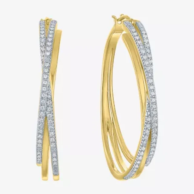 (G-H / I1-I2) Womens 1/4 CT. T.W. Lab Grown White Diamond 14K Gold Over Silver 20mm Hoop Earrings