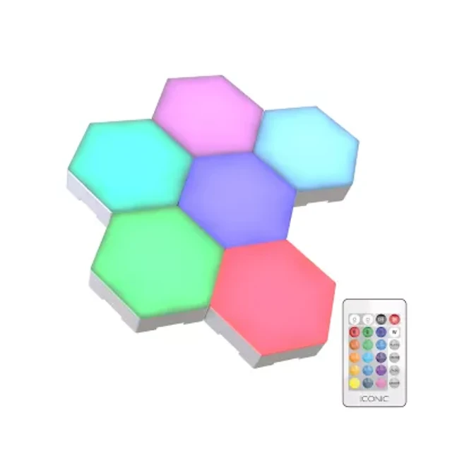 Iconic HexGlow Tile Lights, Six Hexagonal Lights with Full RGB Spectrum LEDs and Touch Controls
