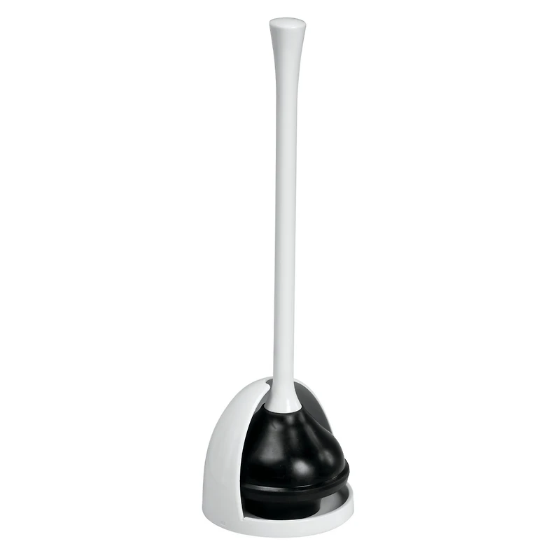 The InterDesign Una Plunger is a smart addition to any bathroom. The included house hides away the black plunger. It has a clean look while offering access to plunger when needed