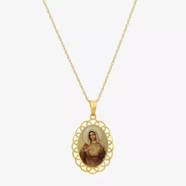 Immaculate Heart Of Mary Womens 14K Gold Oval 18 Inch Pendant Necklace