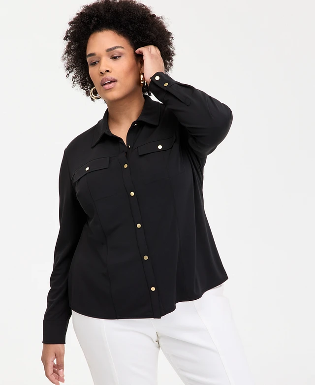 I.n.c. International Concepts Plus Size Satin Silky Shirt, Macy's Exclusive