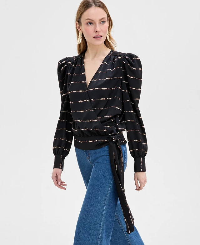 I.n.c. International Concepts Women's Printed Puff-Sleeve Blouse, Exclusively at Macy's