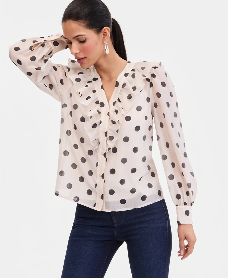 Pretty ruffles frame the neckline and placket on this gorgeous blouse from I.n.c. International Concepts. About The Brand: I.n.c. is inspired by fabulous women-always bold, confident, and stylish.
