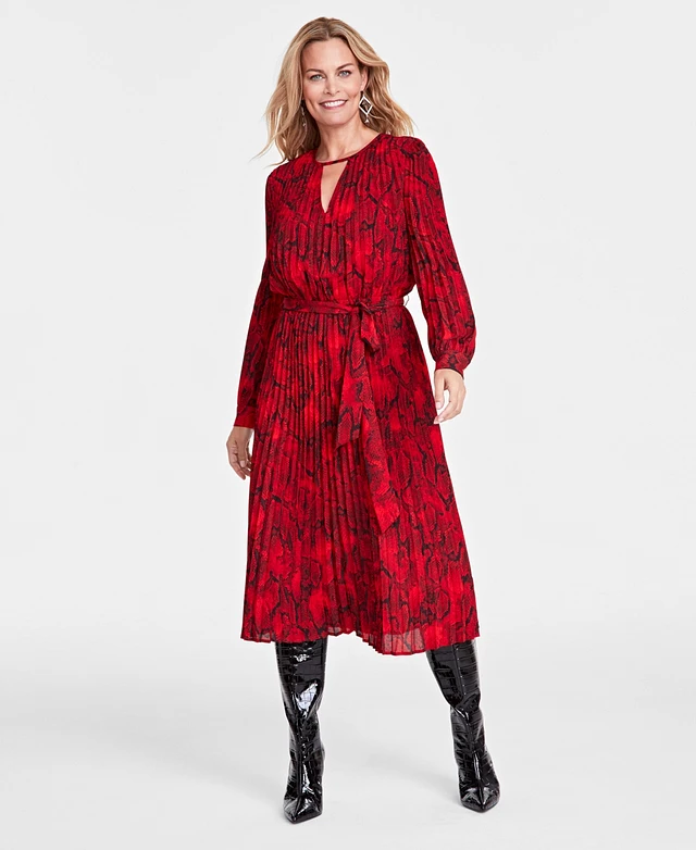 I.n.c. International Concepts Women's Printed Tie-Waist Pleated Midi Dress, Created for Macy's