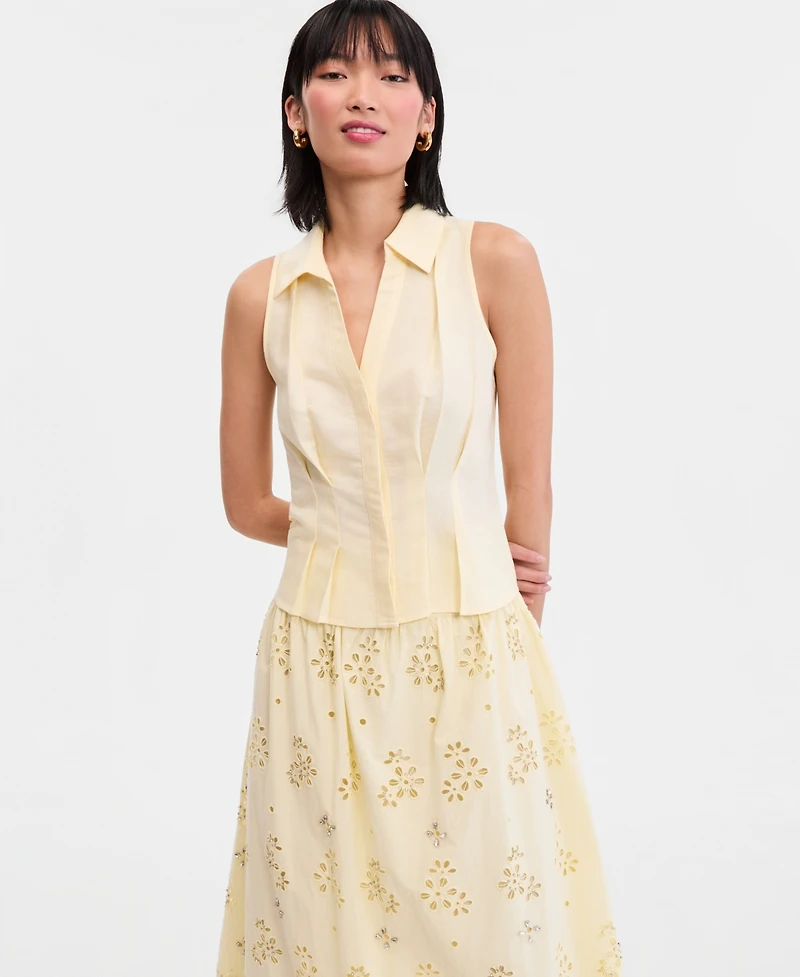 I.n.c. International Concepts Women's Sleeveless Collared Linen Button-Down Shirt, Macy's Exclusive in Ponce, PR