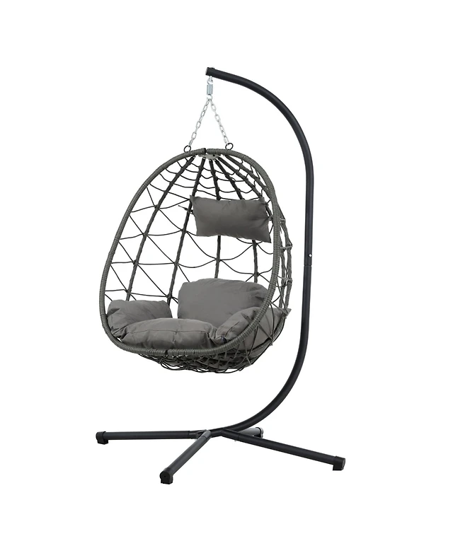 Merrick Lane Riley Foldable Woven Hanging Egg Chair With Removable Cushion And Stand For Indoor And Outdoor Use