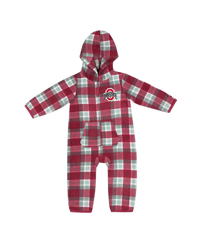 Infant Boys and Girls Colosseum Scarlet, Gray Ohio State Buckeyes Farays Plaid Full-Zip Hoodie Jumper