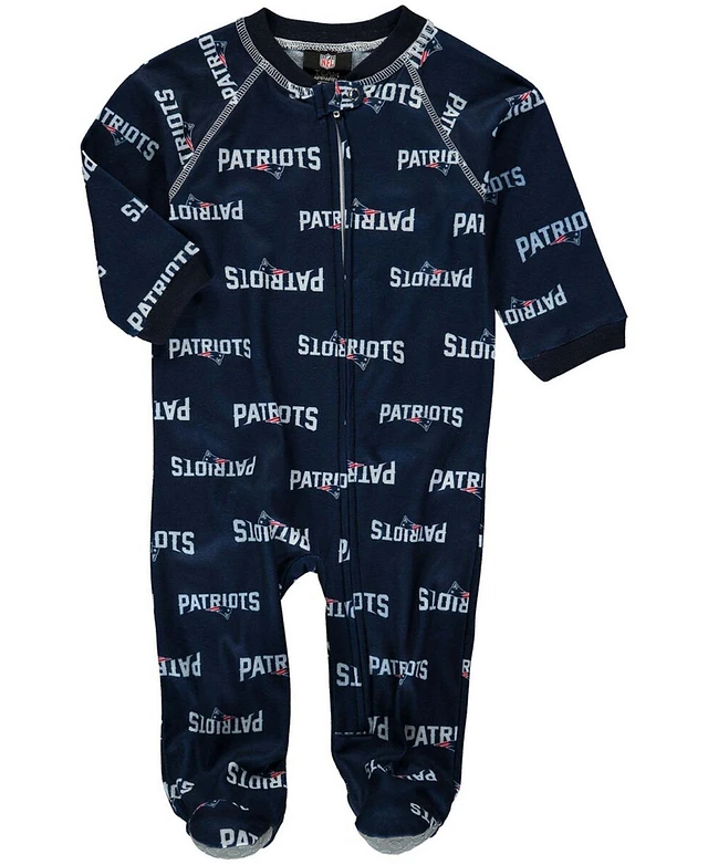 Toddler Boys and Girls Navy New England Patriots Allover Print Raglan Full-Zip Sleeper