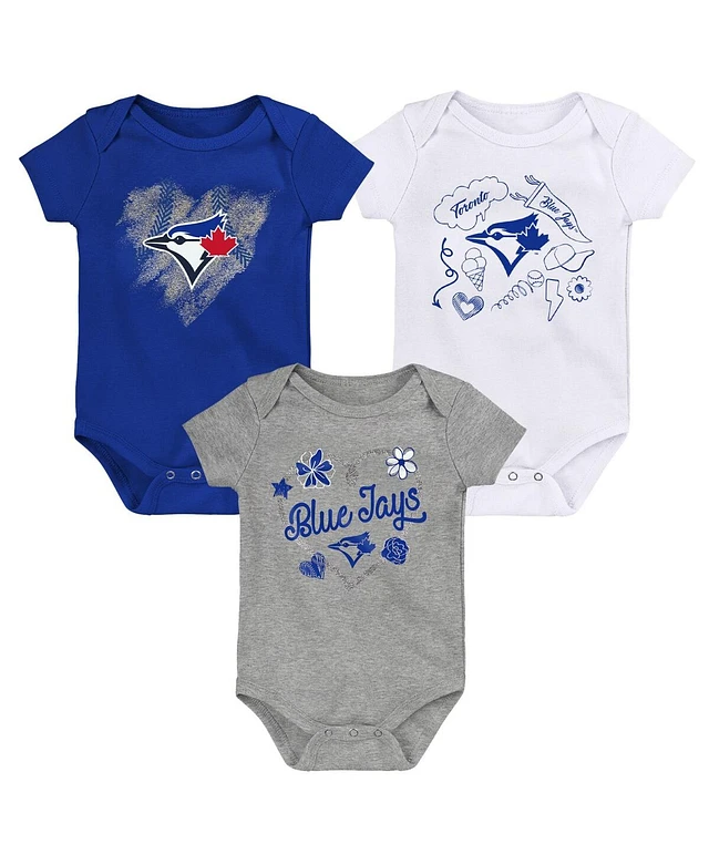 Newborn and Infant Boys and Girls Toronto Blue Jays Royal, White, Heathered Gray Game Time Three-Piece Bodysuit Set