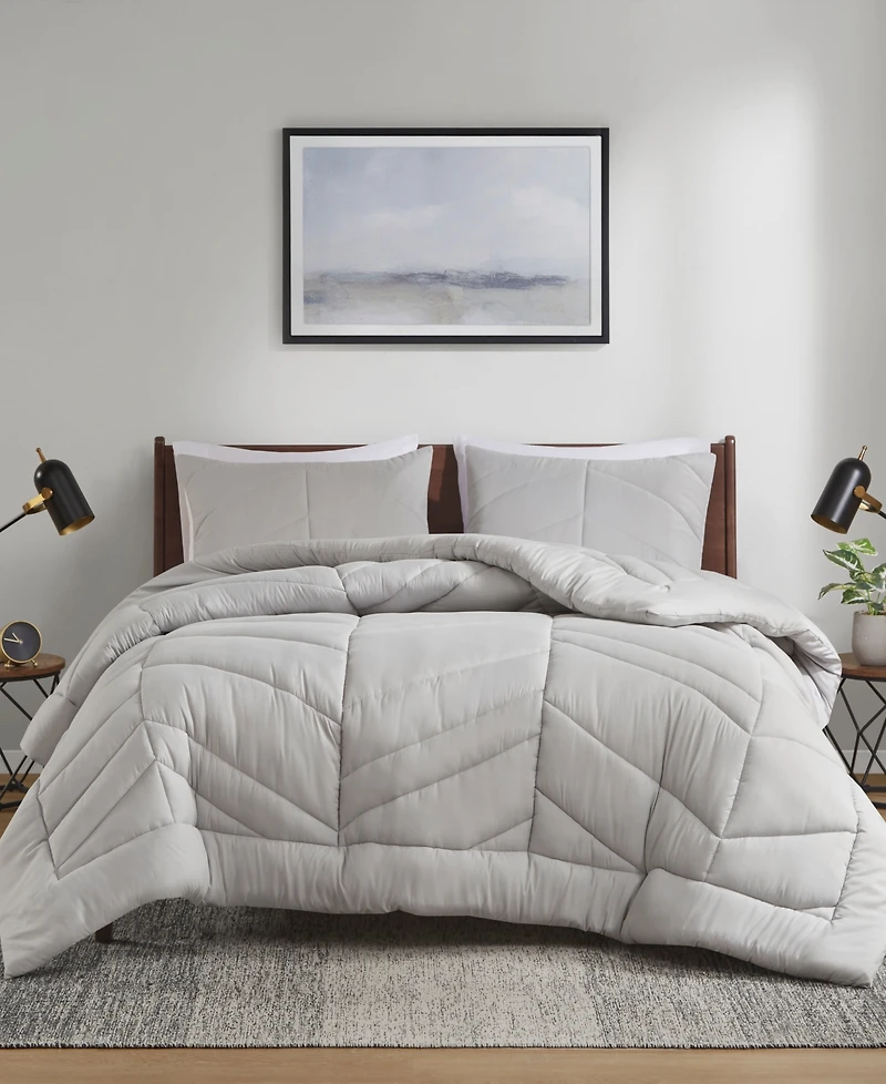 Experience the ultimate comfort with this quilted comforter set. The puffy comforter features a plush 350gsm polyester fill that will wrap you in softness, while the coordinating shams complete the bedding set.