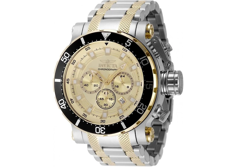 This beautiful Invicta Coalition Forces watch contains a precise Quartz movement in addition to a steel, gold case. Its face displays a gold, metal dial protected by a highly resistant Flame Fusion Crystal. This timepiece is completed by a gold, steel, band and it offers water resistance of up to 100 m. Covert operations are revealed as Invicta's stealth Coalition Forces steps into the fore. Conditioned to handle the most sophisticated of endeavors, the Coalition Forces are at the ready, available for the day-to-day maneuvers to come. Emboldened with the attributes of true leadership, the Coalition Forces reach the front line with a range of tactics turning time into a multi-faceted vision quest. Building each timepiece for the fierce of heart, Invicta watches are an exemplary demonstration of versatility, setting a precedent for braving the most adventurous of activities.
