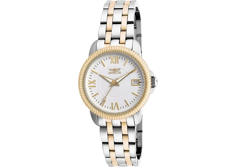 Elevate your style with the Invicta Ladies' Two Tone Stainless Steel Watch from the Specialty Collection. This exquisite timepiece features a 32mm stainless steel case and a stunning two-tone band that combines the elegance of steel and gold, making it perfect for any occasion. With a durable sapphire crystal and a water resistance of up to 100m, this watch is designed for both beauty and functionality. The push crown adds a touch of sophistication, while the 170mm band length ensures a comfortable fit. Make a statement and embrace timeless elegance with this must-have accessory.
