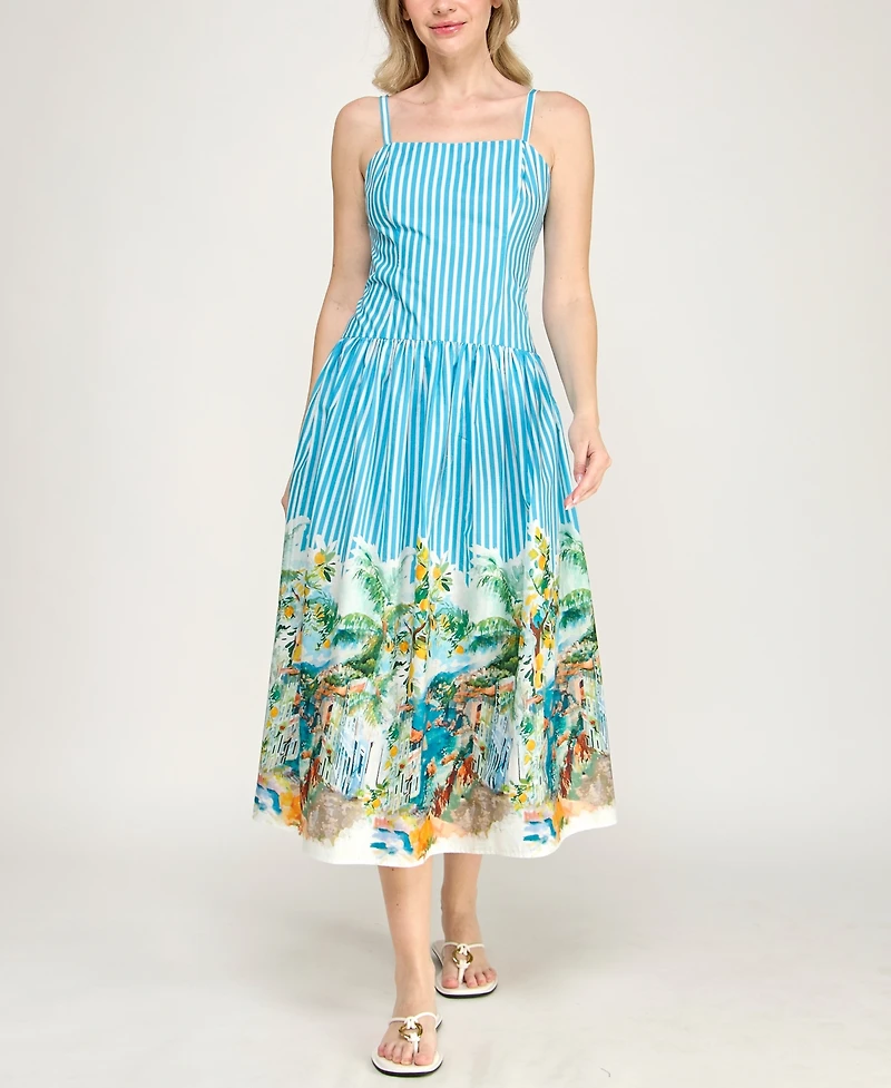 Invitee Women's Square Neck Drop Waist Midi Dress