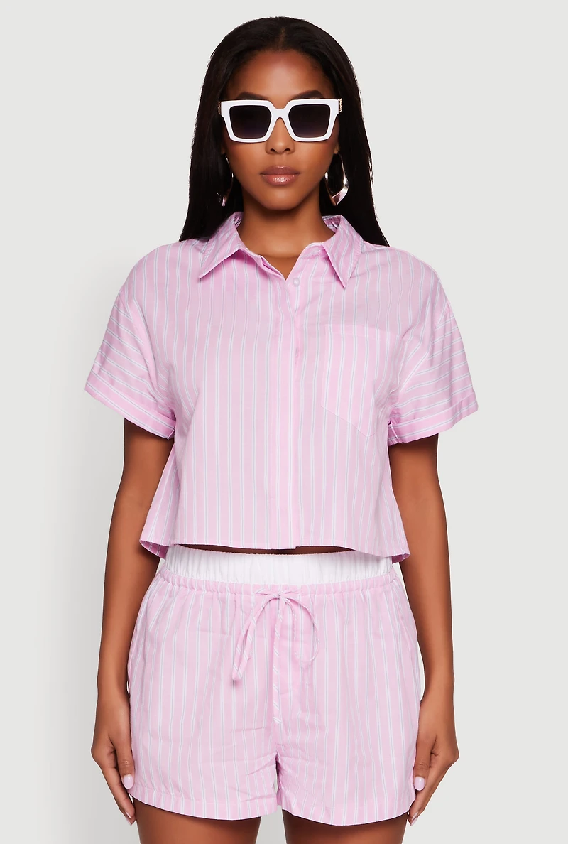 Iris Striped Boxy Button Front Cropped ShirtIris Striped Boxy Button Front Cropped Shirt