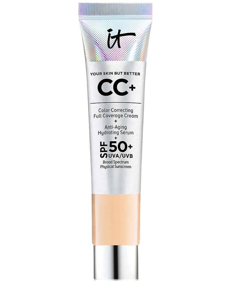 Developed with plastic surgeons, your #1 bestseller* It Cosmetics Cc+ Cream with Spf 50+ goes beyond color-correcting to include your full coverage foundation, anti-aging serum and mineral sunscreen in one.