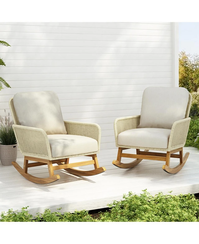 Streamdale Beige Wicker Rocking Chair with Cushions - Indoor/Outdoor