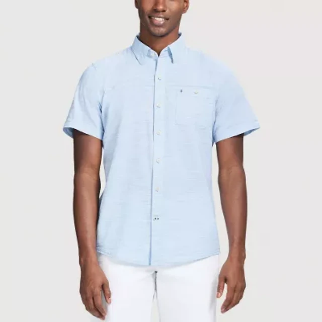 IZOD Dockside Chambray Mens Short Sleeve Regular Fit Stretch Fabric Button-Down Shirt