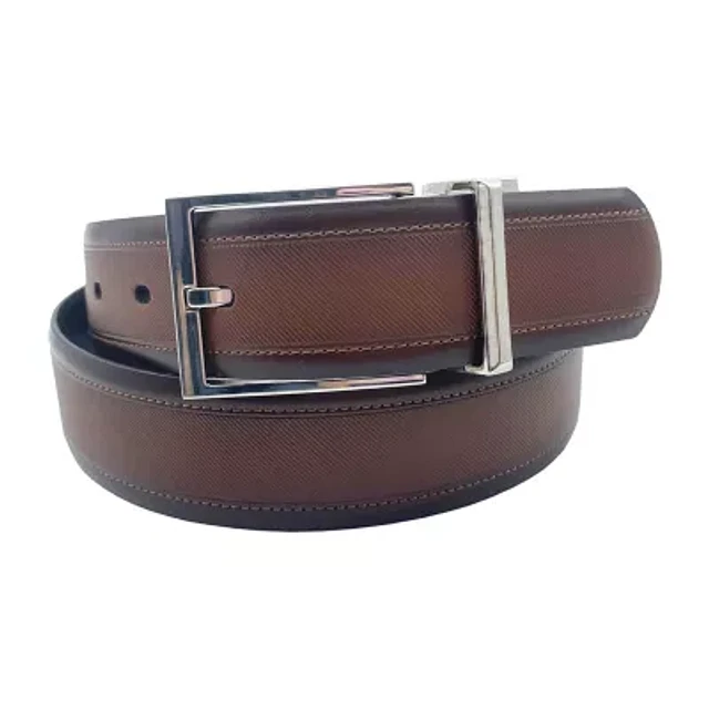 J. Ferrar Leather Reversible Twill Embossed Mens Belt