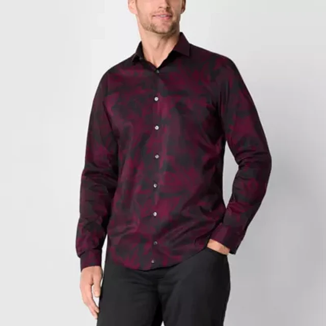 J. Ferrar Mens Slim Fit Long Sleeve Floral Button-Down Shirt