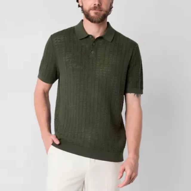 J. Ferrar Textured Mens Short Sleeve Button Polo Sweater