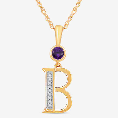 B Womens Genuine Purple Amethyst 14K Gold Over Silver 18 Inch Pendant Necklace