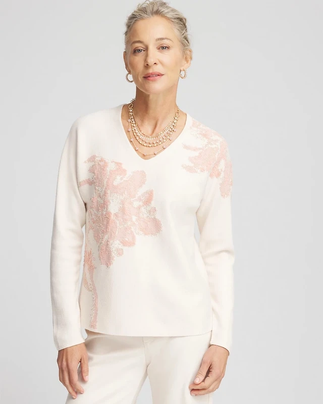Pointelle Scalloped Hem Flare Sleeve Pullover